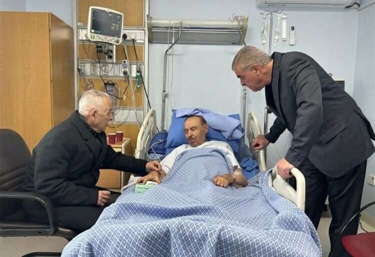 وخلال الزيارة نقل العيسوي أطيب تمنيات الملك للشيخ برجس الحديد، متمنيًا له الشفاء العاجل ودوام العافية.