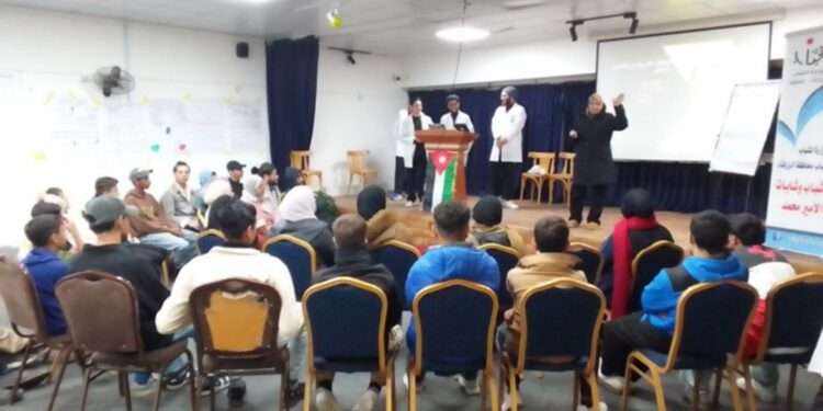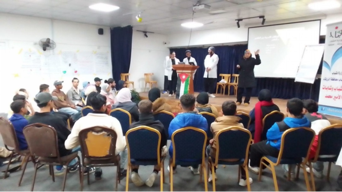 نظم مركز شباب وشابات حي الأمير محمد التابع لمديرية شباب محافظة الزرقاء ورشة توعوية متخصصة بالتعاون مع كلية التمريض/ قسم تمريض صحة المجتمع في جامعة الزرقاء ضمن مبادرة “صحتنا بأيدينا”، بمشاركة 30 شاباً وشابة من منتسبي المركز إضافةً لطلبة السنة الرابعة لمساق تمريض صحة المجتمع في الجامعة.