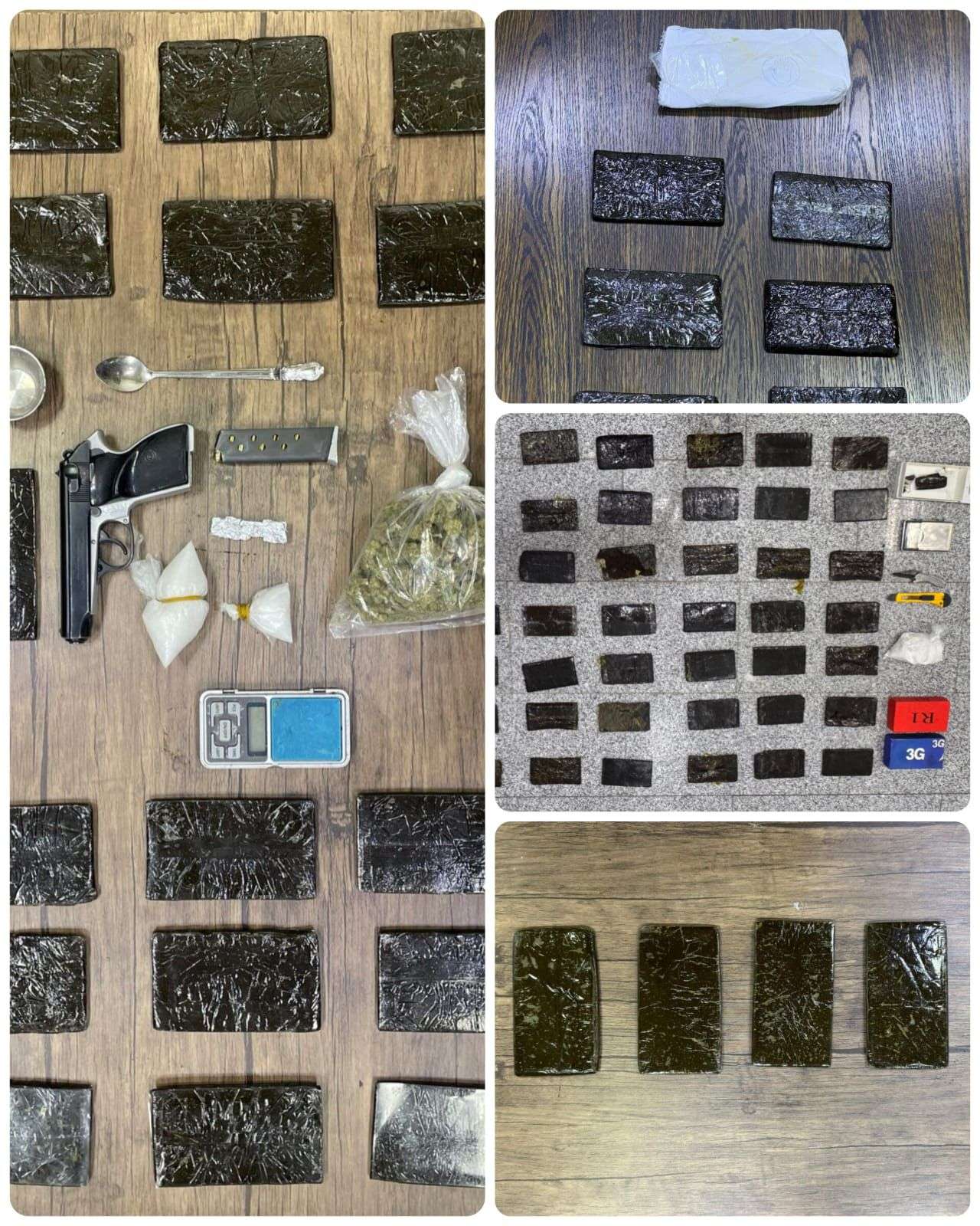 ففي العاصمة تمت في القضية الأولى مداهمة تاجر للمخدرات وإلقاء القبض عليه وضُبط بحوزته 20 كف حشيش و 1 كغم من مادة الكريستال وكمّية من مادة الكوكايين، فيما أُلقي القبض كذلك على تاجر آخر للمخدرات في القضية الثانية وبحوزته 16 كف حشيش وكمية من مادّة الماريجوانا والكريستال المخدرة .