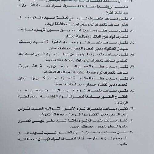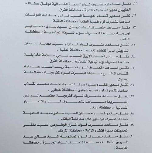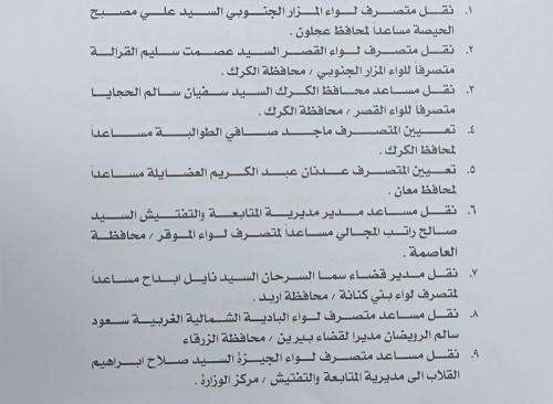 صدى الشعب - أجرى وزير الداخلية مازن الفراية، أمس الاربعاء، تشكيلات إدارية واسعة شملت متصرفين ومساعدي متصرفين ومدراء أقضية. وتالياً التشكيلات: