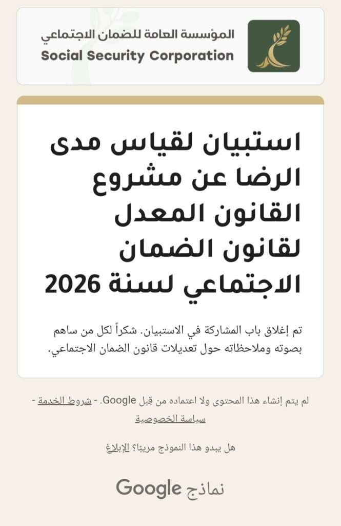 صدى الشعب – أعلنت المؤسسة العامة للضمان الاجتماعي إغلاق الاستبيان الذي أطلقته لقياس مدى الرضا عن مشروع القانون المعدّل لقانون الضمان الاجتماعي لسنة 2026، دون إبداء الأسباب خلال مدة 24 ساعة فقط .. !؟