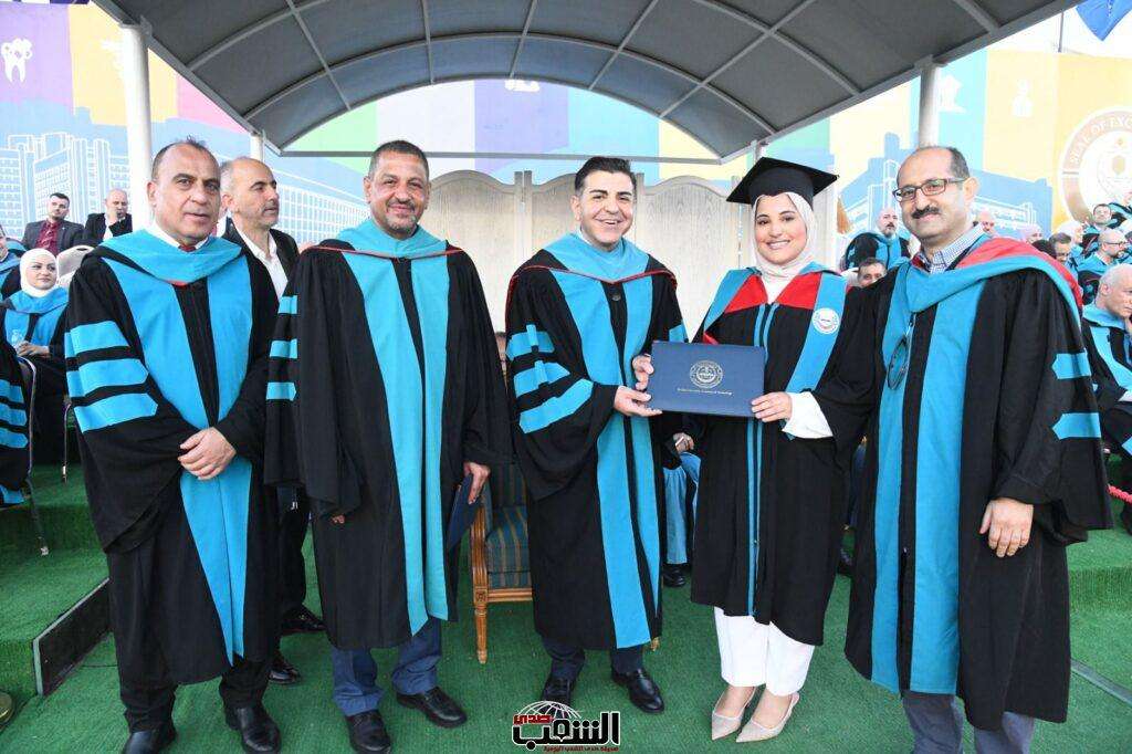 وأقيم الحفل، برعاية رئيس الجامعة الأستاذ الدكتور خالد السالم، وبحضور نواب الرئيس، وعمداء الكليات، وأعضاء الهيئتين التدريسية والإدارية، وجمع كبير من ذوي الطلبة الذين شاركوا أبناءهم فرحة هذا الإنجاز الكبير.
