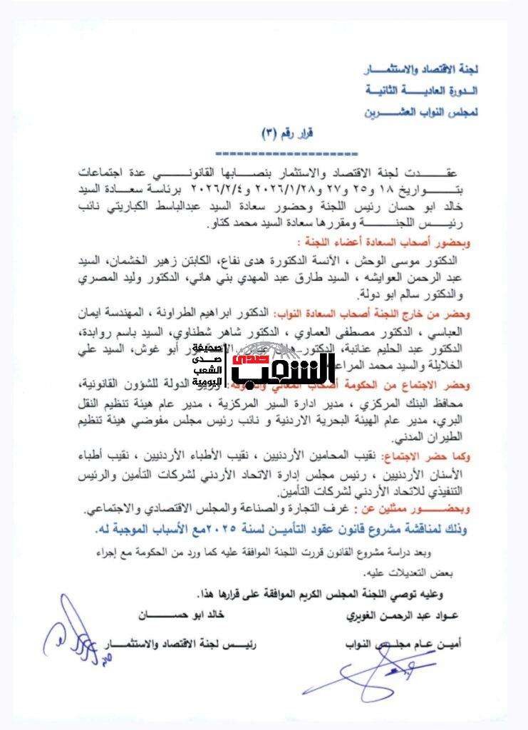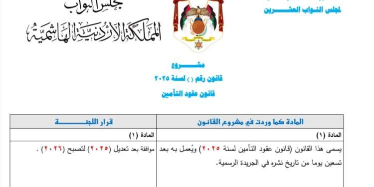 و يتألف مشروع القانون، المُحَوّل من لجنة الاقتصاد و الاستثمار بعد أن عقدت 5 اجتماعات بين شهر كانون ثاني و شباط 2026 لمناقشة مشروع القانون و ساعات مطولة بحضور أصحاب الخبرة من المؤسسات العامة و الخاصة، من غرف تجارية و نقابات، إضافة لوزير الدولة للشؤون القانونية فياض القضاة، ومحافظ البنك المركزي، ومدير إدارة السير المركزية و مدير عام هيئة النقل البري ونائب رئيس مجلس مفوضي هيئة الطيران المدني.