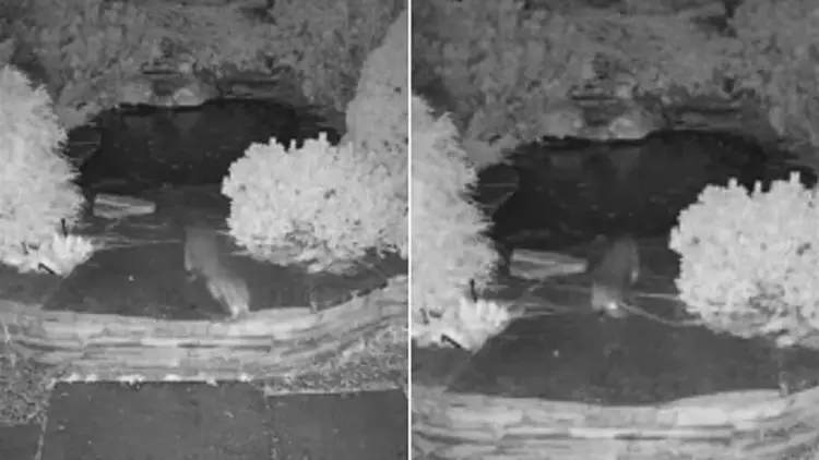 وأظهرت اللقطات الحيوان وهو يخرج بسرعة من البركة في وقت متأخر من الليل ويتجول في الحديقة.