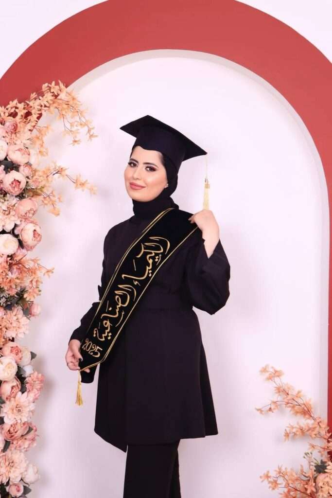 ألف مبروك حبيبتي بنت أخوي العسل … اليوم فرحتنا فيكي ما إلها حدود! تعبك وسهرك ما راح هدر، وها أنتِ بتحصدي أجمل ثمرة… الله يوفقك ويكتبلك أيام كلها نجاح وتفوق وفرح… ومنها لأعلى المراتب يا أحلى خريجة .. فخورين فيكي وقد الدنيا ..
