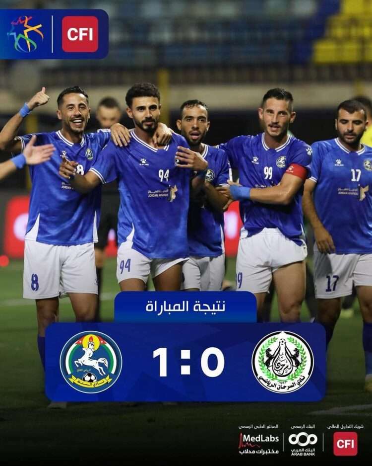 وجاء هدف المباراة الوحيد في الدقيقة 76 عبر ركلة جزاء، انبرى لتنفيذها بنجاح المحترف الفلسطيني عميد صوافطة، واضعًا الكرة على يسار حارس مرمى السرحان.