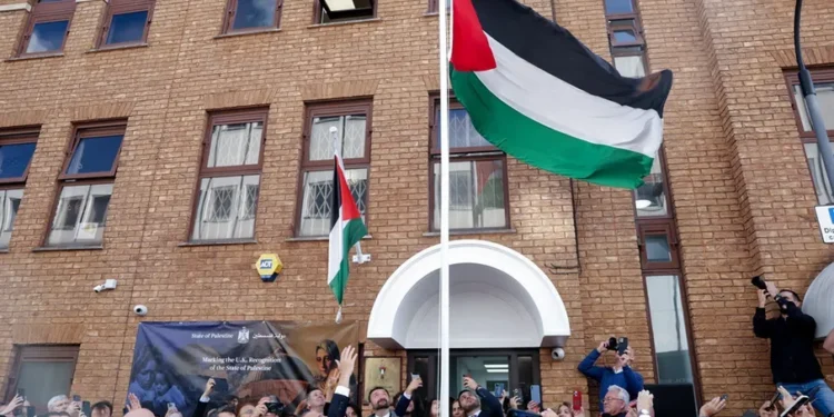 صدى الشعب – رفع، الاثنين، علم دولة فلسطين فوق مبنى السفارة الفلسطينية في لندن، بحضور عدد من السفراء، وممثلين عن الأحزاب.