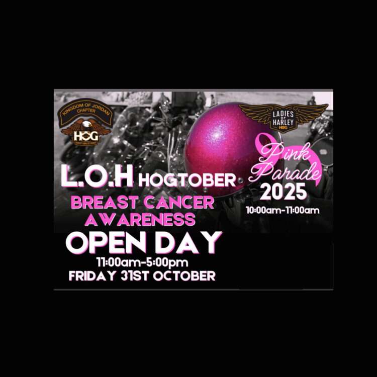 صدى الشعب – أعلنت مجموعة سيدات هارلي-ديفيدسون و مجموعة مالكي دراجات هارلي-ديفيدسون في الأردن و تحت رعاية صاحبة السمو الملكي الأميرة دينا مرعد، الناشطة العالمية في مجال التوعية والوقاية من مرض السرطان ، عن موعد إقامة فعالية هوغتوبَر – أكتوبر الوردي 2025، وذلك يوم الجمعة الموافق 31 تشرين الأول 2025 في موقع شركة هارلي-ديفيدسون – عمّان (قرية الدراجين).