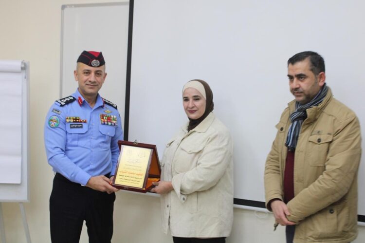وفي نهاية الحفل وزع العقيد الشياب الشهادات على الخريجين، وقدمت المهندسة الكساسبة دروع تكريم لعطوفة مدير شرطة الزرقاء، وعطوفة مدير مديرية الإعلام والشرطة المجتمعية ورئيس مركز أمن طارق، على جهودهم في إنجاح هذه الدورة.