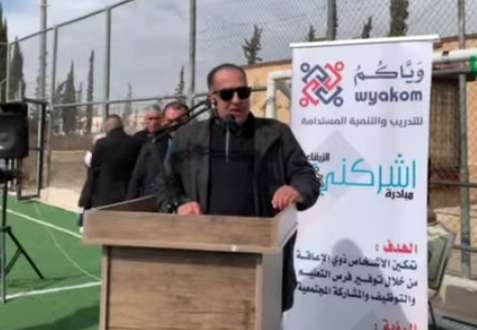 احتفلت مؤسسة وياكم للتدريب والتنمية المستدامة، الأربعاء، وتحت رعاية رئيس بلدية الهاشمية الجديدة، عبدالرحيم القلاب العموش، بإشهار مبادرة ” اشركني ” الخاصة بذوي الاعاقة، بحضور مدير عام المؤسسة الدكتورة يسرى الخريشا، والناشط الاجتماعي، من ذوي الإعاقة، مؤسس هذه المبادرة عبدالقادر العوضات، وجمع من أبناء المجتمع المحلي، في حديقة الشهيد راشد الزيود، بلواء الهاشمية في محافظة الزرقاء.