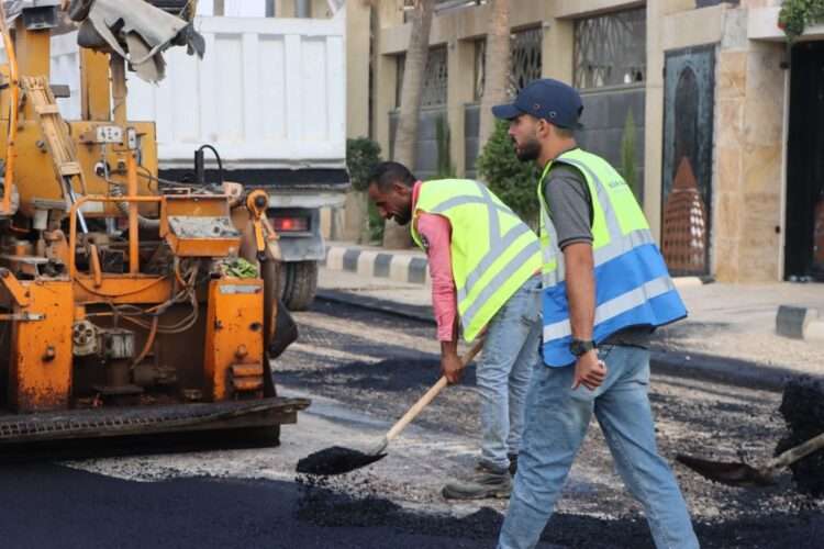 تواصل كوادر بلدية الوسطية، بإشراف مباشر من رئيس لجنة البلدية فتحي الخصاونة والكادر الفني أعمال الخلطة الأسفلتية الساخنة في شوارع منطقة قميم، لإعادة الأوضاع إلى ما كانت عليه بعد تأثرها بأعمال مشروع الصرف الصحي.