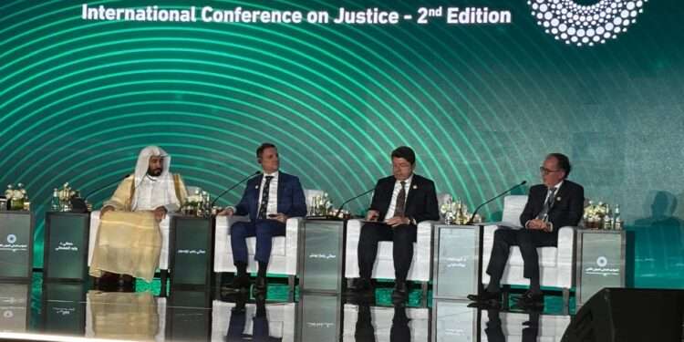 صدى الشعب _ تحت رعاية صاحب السمو الملكي الأمير محمد بن سلمان بن عبدالعزيز آل سعود، ولي عهد المملكة العربية السعودية، شارك وزير العدل الدكتور بسام التلهوني في أعمال المؤتمر العدلي الدولي الثاني، الذي يُعقد في العاصمة الرياض خلال الفترة من 23 إلى 24 نوفمبر 2025، بمشاركة 23 وزيرًا من مختلف دول العالم، إلى جانب رؤساء هيئات قضائية وخبراء قانونيين، وبحضور نحو (4000) مشارك من 40 دولة، وذلك بتنظيم من وزارة العدل في المملكة العربية السعودية.