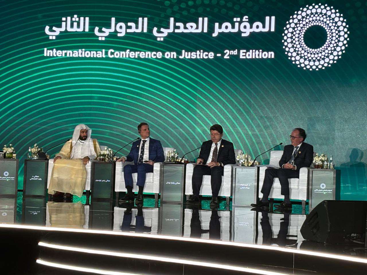 صدى الشعب _ تحت رعاية صاحب السمو الملكي الأمير محمد بن سلمان بن عبدالعزيز آل سعود، ولي عهد المملكة العربية السعودية، شارك وزير العدل الدكتور بسام التلهوني في أعمال المؤتمر العدلي الدولي الثاني، الذي يُعقد في العاصمة الرياض خلال الفترة من 23 إلى 24 نوفمبر 2025، بمشاركة 23 وزيرًا من مختلف دول العالم، إلى جانب رؤساء هيئات قضائية وخبراء قانونيين، وبحضور نحو (4000) مشارك من 40 دولة، وذلك بتنظيم من وزارة العدل في المملكة العربية السعودية.