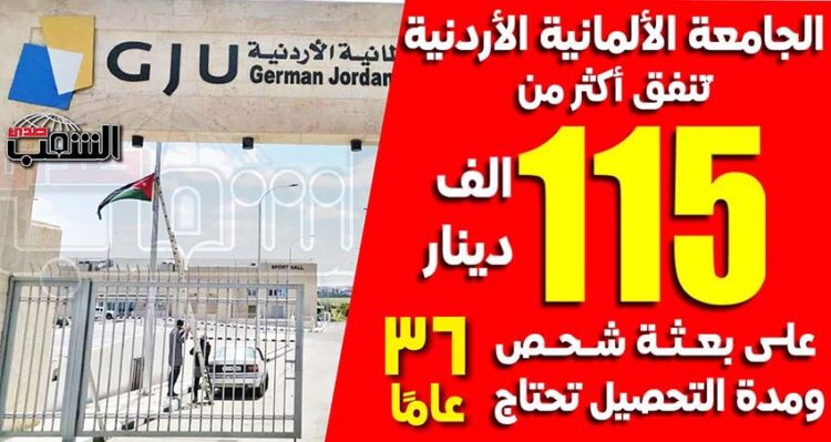 ومما أورد تقرير ديوان المحاسبة السنوي الحادي والسبعون لعام 2022م، أنه ولدى تدقيق قيود وحسابات الجامعة الألمانية الأردنية للفترة (1/4/2021-31/3/2022) تبين أن الذمم المستحقة على أحد المبتعثين على نفقة الجامعة، بعد أن تم إنهاء بعثته لعدم التزامه بالخدمة في الجامعة، كما اشترط العقد الذي وقعه، وألزمه بعد إنهاء بعثته بالعودة والعمل في الجامعة لتحقيق أهداف الجامعة من الابتعاث من حيث تطوير الكفاءات واكتساب الخبرات وإفادة الجامعة والطلاب على وجه خاص والوطن ومؤسساته على وجه عام، لكن المُبتعَث والذي أنفقت عليه الجامعة مبلغاً بلغت قيمته مع الغرامات (115.857) دينار، لم يلتزم بالسداد.