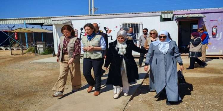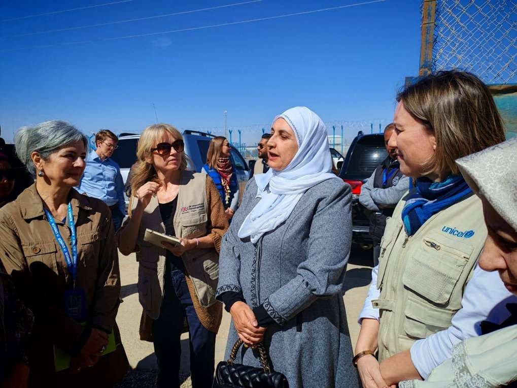 التقت مديرة التربية والتعليم لمنطقة الزرقاء الثانية، فاطمة المومني بوزيرة التنمية الدولية البريطانية، جينيفر شابمان، ووفد من منظمة اليونيسيف، في مدرسة مخيزن الثانوية الخامسة .