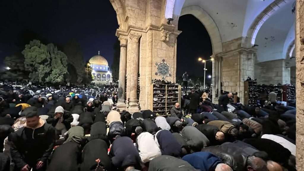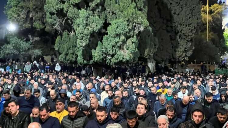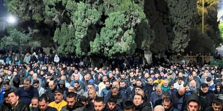 صدى الشعب - أعلنت دائرة الأوقاف الاسلامية في القدس أن نحو 80 ألف مُصلٍ أدوا صلاتي العشاء والتراويح في اليوم الرابع والعشرين من شهر رمضان المبارك في رحاب المسجد الأقصى المبارك.