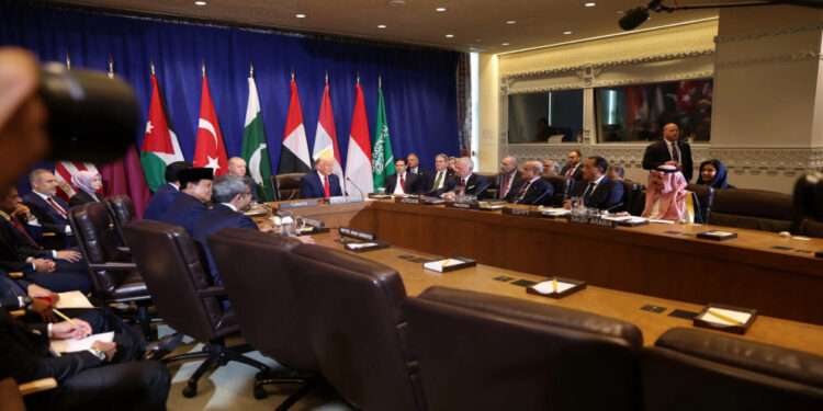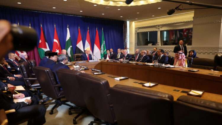 وشارك في الاجتماع الرئيس دونالد ترمب، وسمو الشيخ تميم بن حمد آل ثاني أمير دولة قطر، والرئيس التركي رجب طيب أردوغان، ورئيس إندونيسيا برابوو سوبيانتو، ونائب رئيس مجلس الوزراء وزير الخارجية الإماراتي سمو الشيخ عبدﷲ بن زايد آل نهيان، ووزير الخارجية السعودي سمو الأمير فيصل بن فرحان آل سعود، ورئيس الوزراء المصري الدكتور مصطفى مدبولي، ورئيس الوزراء الباكستاني شهباز شريف.