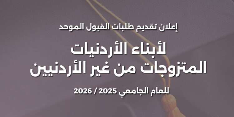 صدى الشعب – أعلنت وحدة تنسيق القبول الموحد في وزارة التعليم العالي والبحث العلمي أن عملية تقديم طلبات الالتحاق الإلكترونية بالجامعات الأردنية الرسمية للطلبة أبناء الأردنيات المتزوجات من غير الأردنيين تبدأ اعتباراً من صباح الأربعاء حتى عصر السبت المقبل.