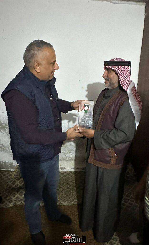 وخلال الزيارة التي رافقه فيها الدكتور مصطفى اللوزي نائب رئيس الاتحاد وعضو مجلس الإدارة السيد عبد القادر المحارمة ومدير المنتخبات السيد خضر رحال ورئيس نادي الكوم الأحمر المختار عبدالرحمن والدكتور احمد العضمات عضو الهيئة العامة بالاتحاد قدّم رئيس الاتحاد درع الاتحاد الأردني لألعاب القوى لوالد الأبطال تعبيرًا عن الامتنان والعرفان لدوره الإيجابي في دعم الرياضة وأبنائه الرياضيين. كما تم تكريم اللاعبين الثلاثة بمنحهم تيشيرت المنتخب الوطني لألعاب القوى تقديرًا ً لمشاركتهم المتميزة في هذه الرياضة.