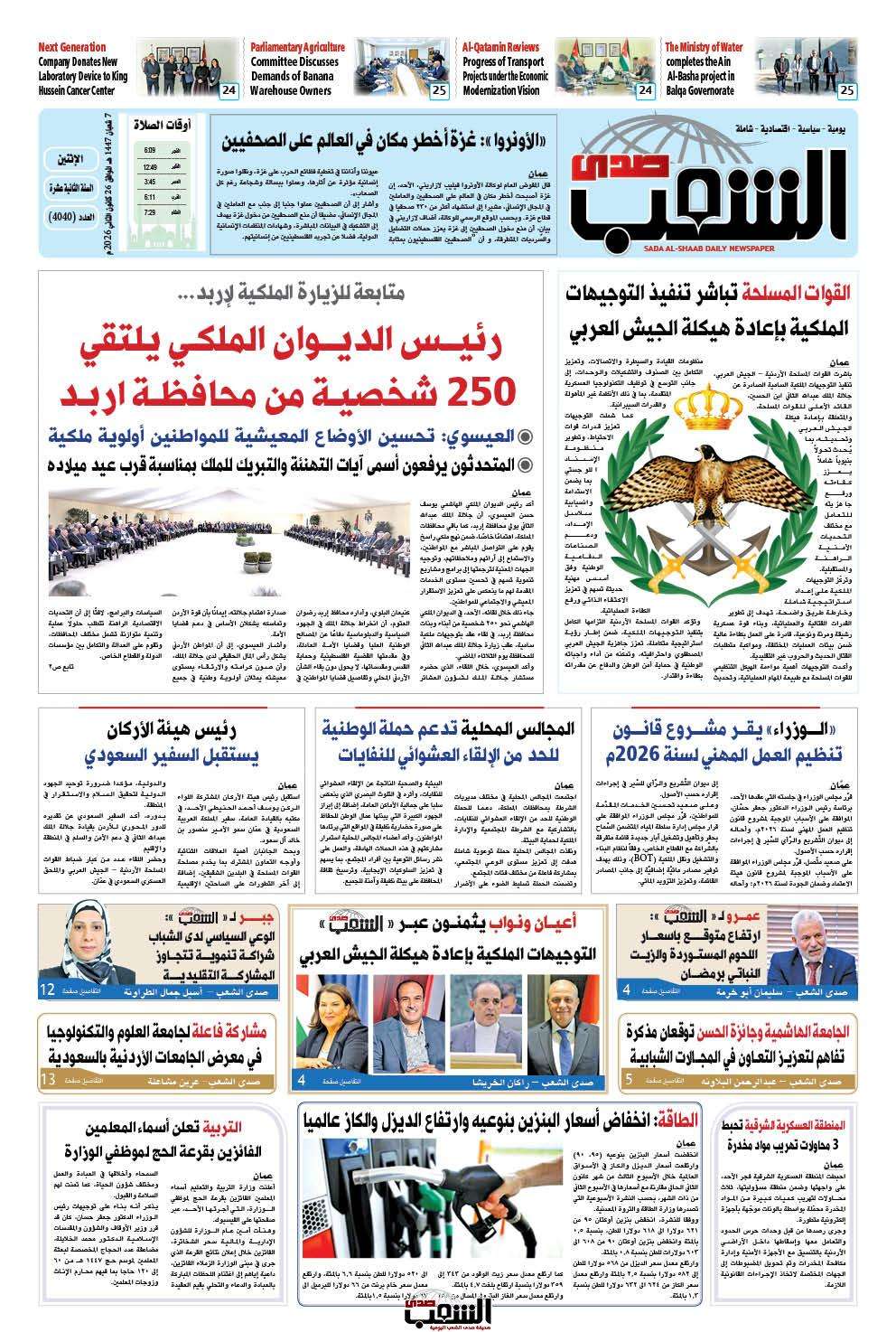 عــدد الإثنيـــن رقم 4040 ، الموافق 26-1-2026