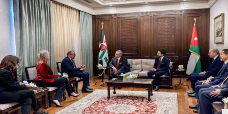 صدى الشعب – استقبل جلالة الملك عبدﷲ الثاني، الأربعاء، المدير العام لمنظمة الصحة العالمية تيدروس أدحانوم غيبرييسوس، لبحث الأولويات الصحية على المستويين الوطني والإقليمي.