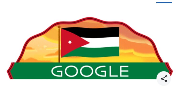 ووضع “جوجل” صورة للعلم الأردني، كخلفية الموقع، تعبيرا عن الاحتفال باستقلال المملكة الهاشمية.