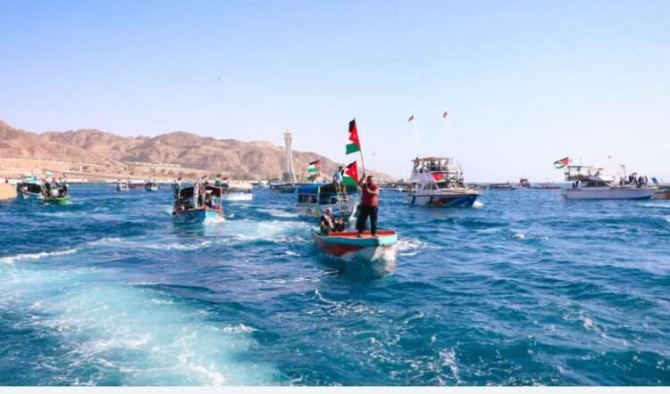 واصلت محافظة العقبة احتفالاتها لليوم الثاني على التوالي بعيد الإستقلال الـ 79، حيث جابت قوارب الصيد والقوارب الزجاجية واليخوت السياحية تتقدمها قطع القوة البحرية والزوارق الملكية، بحضور رئيس مجلس المفوضين “شادي رمزي” المجالي ومحافظ العقبة خالد الحجاج وأعضاء مجلس المفوضين ومدراء الأجهزة الأمنية والرسمية والفعاليات الشعبية.