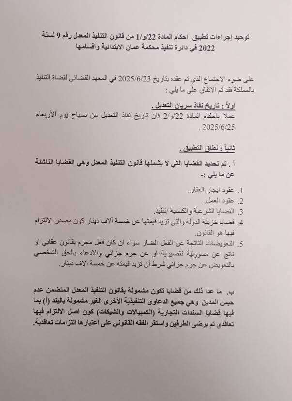 صدى الشعب – دخلت حيز التنفيذ اليوم الأربعاء، تعديلات المادة 22 من قانون التنفيذ الأردني والمتعلقة بمسألة حبس المدين، إذ تتغير بموجبها آلية التعامل مع قضايا حبس المدين، بما في ذلك معظم الديون التعاقدية والشخصية.