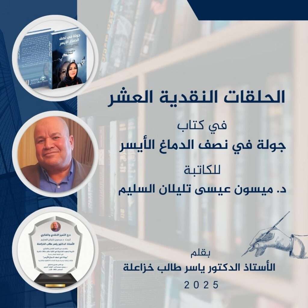 صدى الشعب – يشكّل كتاب “جولة في نصف الدماغ الأيسر” لمؤلفته الدكتورة ميسون عيسى تليلان السليم إضافةً نوعية إلى المكتبة العربية، فهو عمل موسوعي فريد امتد على أكثر من ثمانمائة صفحة، توزّعت على خمسة أبواب رئيسية، وزُيّن بتسعٍ وعشرين شهادة فكرية ونقدية صادرة عن مفكرين ونقاد ينتمون إلى سبع عشرة دولة عربية. ولم يكن هذا الكتاب مجرّد مؤلَّف مطبوع، بل جاء مشروعًا فكريًا متكاملًا جمع بين دقّة التحليل العلمي وثراء البعد الإنساني، واستطاع أن يفتح آفاقًا رحبة للنقاش حول قضايا التفكير النقدي والوعي في المجتمعات العربية.