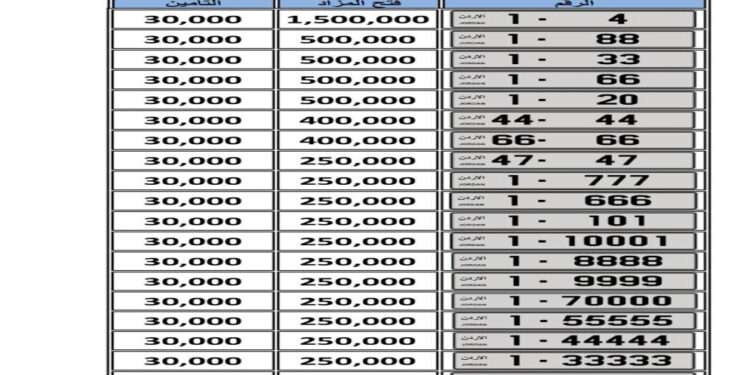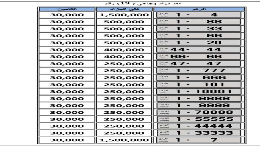 ومن المقرر أن يبدأ المزاد العلني الوجاهي على جميع الأرقام الاثنين المقبل، في تمام الساعة الرابعة عصرا.