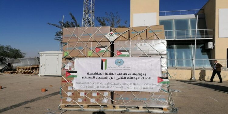 أمين عام الهيئة الخيرية الأردنية الهاشمية حسين الشبلي قال في تصريح سابق إنه سيتم تسليم المساعدات إلى الهلال الأحمر المصري في مطار العريش لإدخالها إلى غزة وتوزيعها على المستشفيات من خلال الجهات المعنية، وذلك دعماً للقطاع الصحي في قطاع غزة.