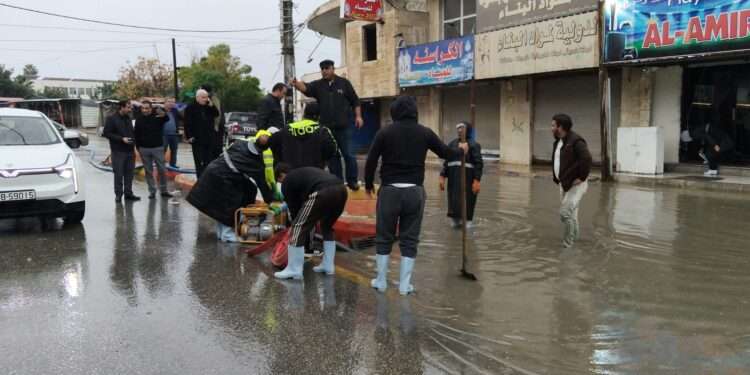 وأشرف أبو عبيد على عمل الآليات ومواتير الشفط المستخدمة في سحب المياه من المناطق المنخفضة، مؤكداً أن الإجراءات المتخذة تأتي ضمن خطة البلدية المعدة مسبقاً لموسم الشتاء، والتي شملت أعمال تنظيف وصيانة لشبكات تصريف مياه الأمطار.