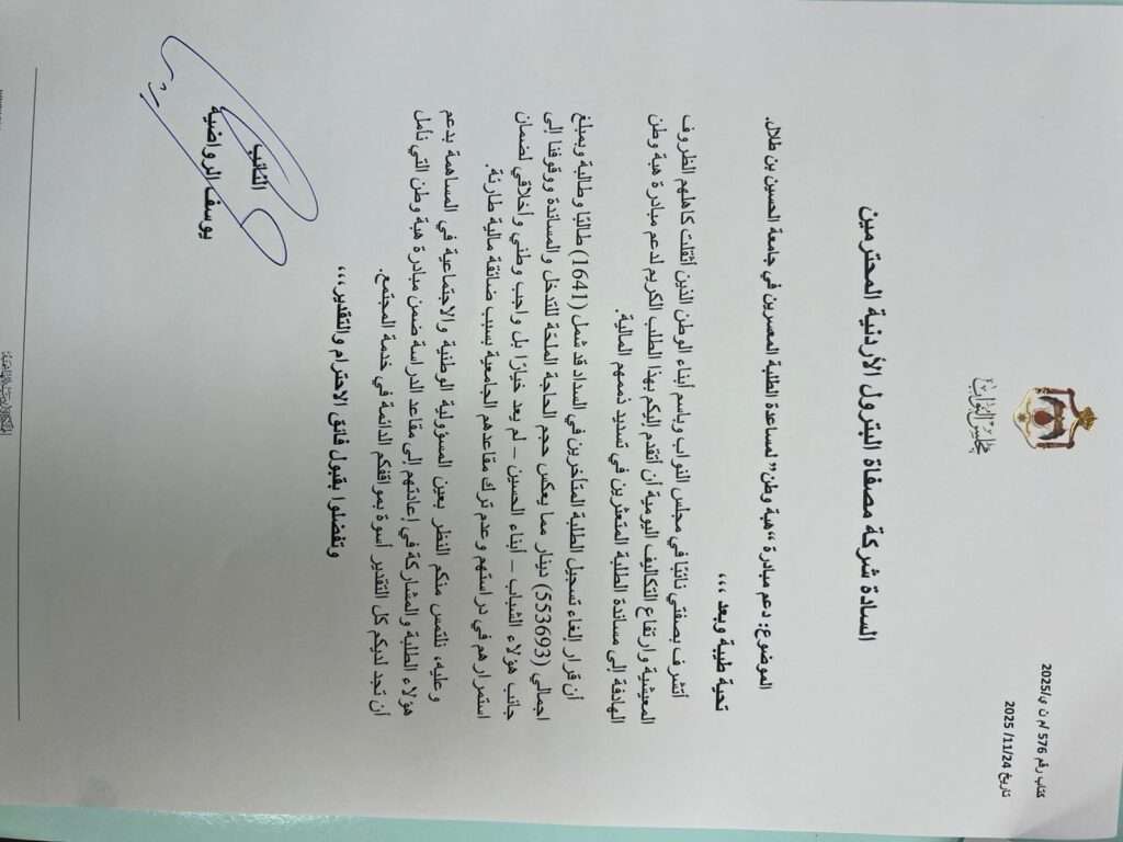 وجاء طلب الرواضية بعد قرار مجلس العمداء رقم (2025/353)، المتعلق بإلغاء تسجيل الطلبة المذمومين ماليًا، والذي شمل 1641 طالبًا وطالبة بمبالغ إجمالية بلغت 553,693 دينارًا.