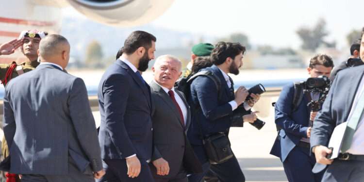 صدى الشعب – استقبل جلالة الملك عبدالله الثاني، الأربعاء، الرئيس السوري أحمد الشرع، لدى وصوله مطار ماركا في زيارة للمملكة.