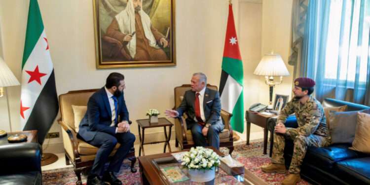 الملك خلال لقائه الشرع يجدد التأكيد على دعم الأردن للسوريين في إعادة بناء بلدهم