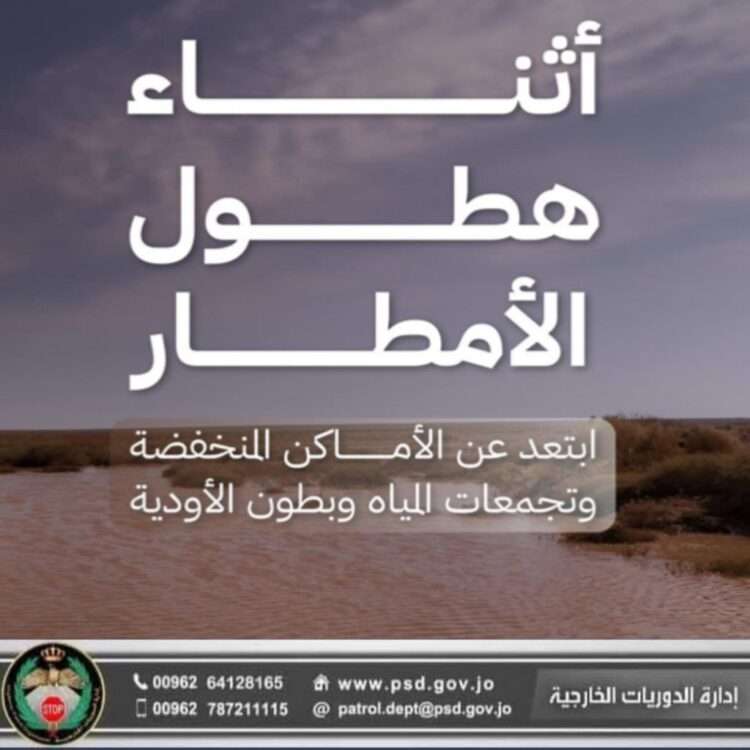 ونوهت في منشورٍ عبر صقحاتها الرسمية: “يرجى توخى أقصى درجات الحيطة والحذر أثناء القيادة وعدم التردد بالاتصال الفوري على هاتف الطوارئ 911، دورياتنا في الموقع للدلالة والإرشاد مع امنياتنا للجميع بالسلامة.”