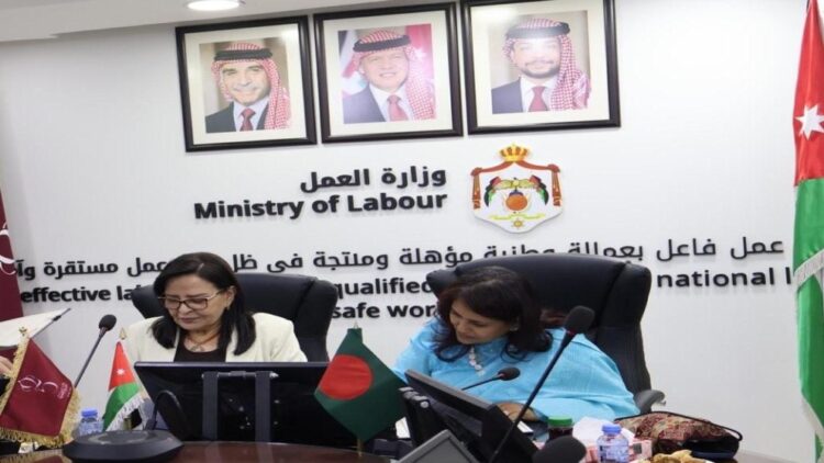 صدى الشعب – وقعت وزيرة العمل ناديا الروابدة، الأحد، مع سفيرة جمهورية بنغلادش الشعبية لدى المملكة ناهدة سبحان، تجديد مذكرة التفاهم بين البلدين في مجال تنظيم استقدام واستخدام العمالة غير الأردنية من الجنسية البنغالية.