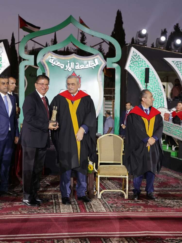 وجاء هذا التكريم خلال احتفالات الجامعة بتخريج الفوج الستين من طلبتها، حيث قدم رئيس الجامعة، الدكتور نذير عبيدات، درع التكريم للمهندس الرواد، مشيدا بعطائه المتواصل وحرصه على دعم مؤسسات التعليم العالي، وعلى وجه الخصوص جامعته الأم التي تخرج منها وأسهم في رفعتها.
