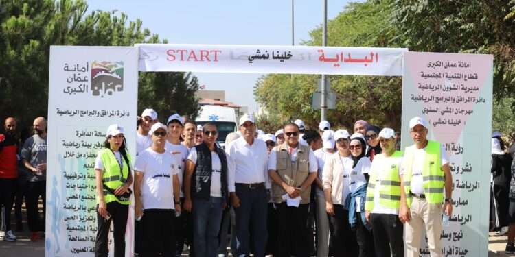 انطلقت في حدائق الملك عبدالله الثاني في المقابلين، اليوم الجمعة، فعالية رياضية ترفيهية بعنوان “خلينا نمشي”، برعاية مندوب رئيس لجنة أمانة عمان الكبرى، نائب مدير المدينة للتنمية المجتمعية حاتم الهملان، وحضور المدير التنفيذي للشؤون الرياضية الدكتورة منال العبداللات