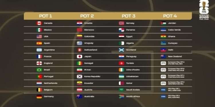 الوعاء الرابع: الأردن، الرأس الأخضر، غانا، كوراساو، هايتي، نيوزيلندا، الفائز بالملحق الأوروبي (المسار A)، الفائز بالملحق الأوروبي (المسار B)، الفائز بالملحق الأوروبي (المسار C)، الفائز بالملحق الأوروبي (المسار D)، الفائز ببطولة الملحق الفيفا (1)، الفائز ببطولة الملحق الفيفا (2).