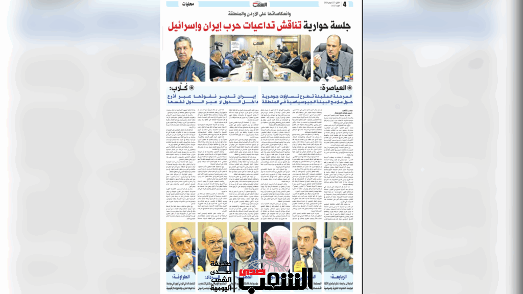 نظم مركز صحيفة صدى الشعب  للدراسات السياسية والاستراتيجية، جلسة حوارية سياسية تناولت تداعيات حرب إيران وإسرائيل وانعكاساتها على الأردن والمنطقة.