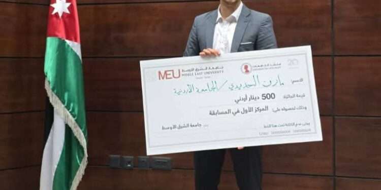 صدى الشعب – في إنجاز جديد يُضاف إلى رصيده الفني، فاز الشاب مازن عودةالله الحديدي بالمركز الأول في الموسم الثاني من مسابقة “منشد الجامعات”، والتي تنظمها جامعة الشرق الأوسط (MEU) بالتعاون مع عدد من الجامعات الأردنية.