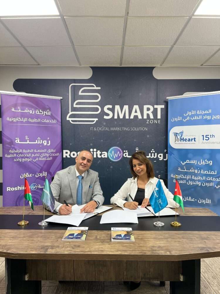 صدى الشعب – وقع مدير عام منصة روشتة الالكترونية علي خضير اتفاقية تعاون مع مؤسِسة ومدير عام شركة مجلة قلب الأردن الطبية حنان الفقهاء، بهدف تقديم خدمات طبية إلكترونية متقدمة ومتكاملة للمرضى الاردنيين والعرب، وتعزيز الترويج للسياحة العلاجية بالأردن.