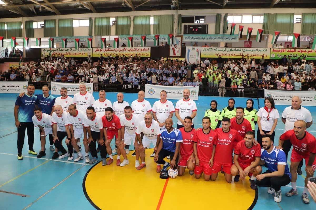 وتخلل الحفل مباراة ودّية جمعت بين لاعبي المنتخب الوطني القدامى والحاليين، أقيمت في أجواء مفعمة بالحماس والروح الرياضية، إيصالاً لرسالة شبابية هادفة مفادها أن الرياضة طريق للحياة… لا للمخدرات.
