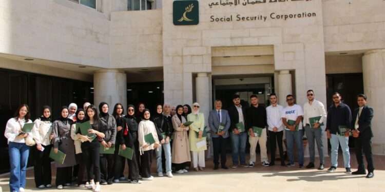زار وفد من طلبة قسم الاقتصاد في الجامعة الهاشمية المؤسسة العامة للضمان الاجتماعي، بهدف الاطلاع على طبيعة عملها وبرامجها والخدمات التي تقدمها للمؤمن عليهم والمتقاعدين.