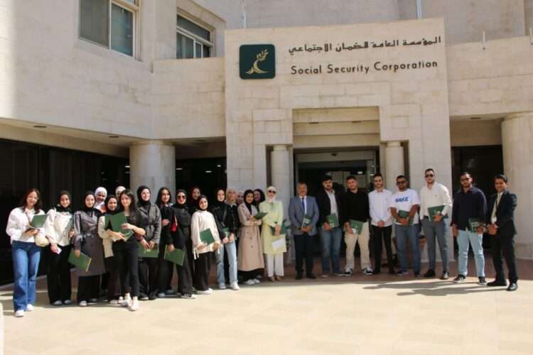 زار وفد من طلبة قسم الاقتصاد في الجامعة الهاشمية المؤسسة العامة للضمان الاجتماعي، بهدف الاطلاع على طبيعة عملها وبرامجها والخدمات التي تقدمها للمؤمن عليهم والمتقاعدين.