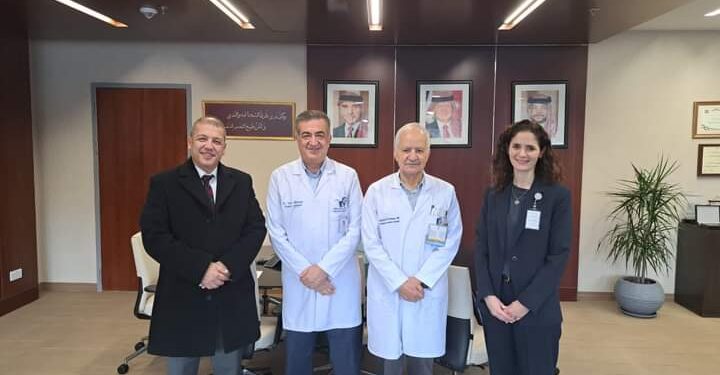 بحث مديرعام مستشفى الملك المؤسس عبدالله الجامعي الدكتور خلدون البشايرة ومدير مركز الحسين للسرطان الدكتور عاصم منصور، وبحضور رئيس العلاج بالأشعة الدكتور عبداللطيف الموسى، والدكتورة نور عوض ، أطر التعاون المشترك في تسهيل علاج مرضى السرطان في إقليم الشمال في ظل الإمكانيات المتوفرة ، وبهدف تعزيز مبدأالتكامل في القطاع الصحي الأردني للوصول لتقديم خدمة مثلى لمرضى السرطان .
