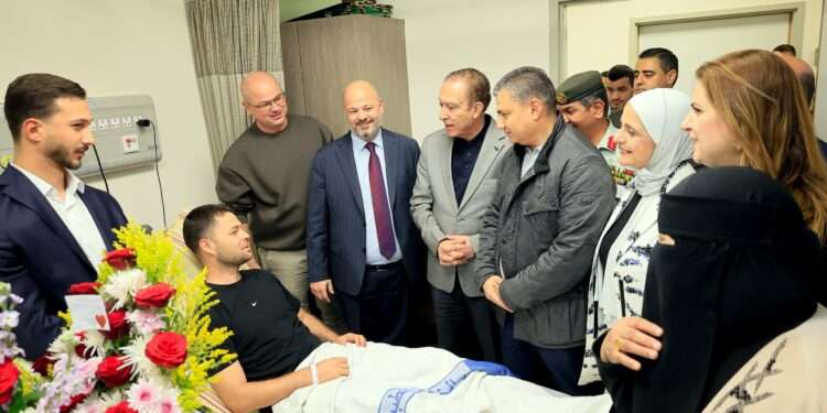 صدى الشعب – زار وفد من حزب الميثاق الوطني المصابين جراء الـمداهمه الأمنية في لواء الرمثا، والذين يتلقّون العلاج في مدينة الحسين الطبية – الخدمات الطبية الملكية، وذلك للاطمئنان على صحتهم، وتأكيدًا على موقف الحزب الداعم لسيادة القانون وأمن واستقرار مجتمعاتنا ووطنا والرافض لكافة الأعمال الإرهابية التي تمس أمن الوطن واستقراره.