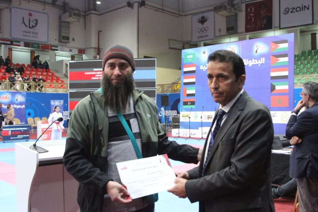 وتوجه مسعود بالشكر لرئيس مجلس الاعيان فيصل الفايز على رعايته البطولة والى نائب سمو رئيس اللجنة الاولمبية الدكتور ساري حمدان ولرئيس الاتحاد العربي للكراتيه الدكتور القناص على موافقته ودعمه لإقامة الاتحاد الاردني للكراتيه للبطولة العربية.