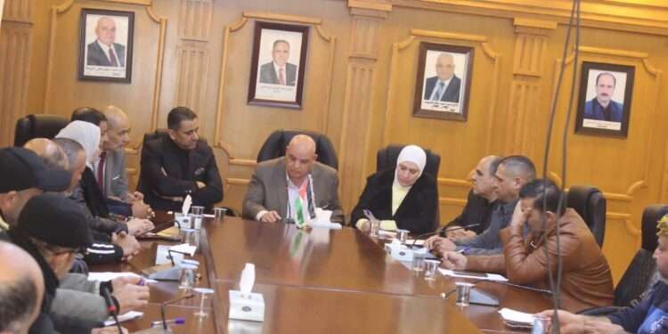 صدى الشعب – عقدت غرفة تجارة محافظة إربد اليوم اجتماعاً جمع تجار حسبة الجورة مع عدد من نواب المحافظة ورئيس وأعضاء غرفة تجارة إربد، وذلك في مقر الغرفة بمدينة إربد.